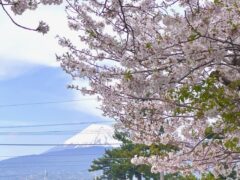 そんな感慨にふけっていると、当社の駐車場の桜の向こうに、富士山の重なりが見えました。